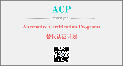 英文缩略词“ACP”经常作为“Alternative Certification Programs”的英文缩写来使用,中文表示:“替代认证计划”。本文将详细介绍英文缩写词ACP所代表英文单词,其对应的中文拼音、详细解释以及在英语中的流行度。此外,还有关于缩略词ACP的分类、应用领域及相关应用示例等。