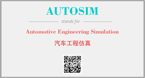 英文缩略词“AUTOSIM”经常作为“Automotive Engineering Simulation”的英文缩写来使用,中文表示:“汽车工程仿真”。本文将详细介绍英文缩写词AUTOSIM所代表英文单词,其对应的中文拼音、详细解释以及在英语中的流行度。此外,还有关于缩略词AUTOSIM的分类、应用领域及相关应用示例等。