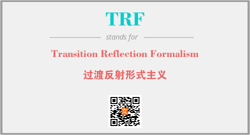上述内容是“Transition Reflection Formalism”作为“TRF”的缩写,解释为“过渡反射形式主义”时的信息,以及英文缩略词TRF所代表的英文单词,其对应的中文拼音、详细解释以及在英文中的流行度和相关分类、应用领域及应用示例等。