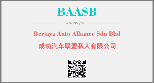 上述内容是“Berjaya Auto Alliance Sdn Bhd”作为“BAASB”的缩写,解释为“成功汽车联盟私人有限公司”时的信息,以及英文缩略词BAASB所代表的英文单词,其对应的中文拼音、详细解释以及在英文中的流行度和相关分类、应用领域及应用示例等。