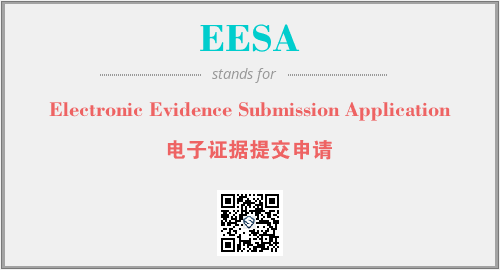 上述内容是“Electronic Evidence Submission Application”作为“EESA”的缩写,解释为“电子证据提交申请”时的信息,以及英文缩略词EESA所代表的英文单词,其对应的中文拼音、详细解释以及在英文中的流行度和相关分类、应用领域及应用示例等。