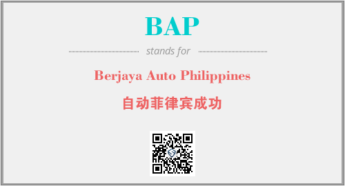 上述内容是“Berjaya Auto Philippines”作为“BAP”的缩写,解释为“自动菲律宾成功”时的信息,以及英文缩略词BAP所代表的英文单词,其对应的中文拼音、详细解释以及在英文中的流行度和相关分类、应用领域及应用示例等。
