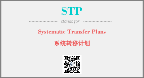 以上为Systematic Transfer Plans英文缩略词STP的中文解释,以及该英文缩写在英语的流行度、分类和应用领域方面的信息。
