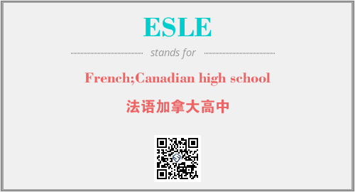 英文缩略词“ESLE”经常作为“French;Canadian high school”的英文缩写来使用,中文表示:“法语加拿大高中”。本文将详细介绍英文缩写词ESLE所代表英文单词,其对应的中文拼音、详细解释以及在英语中的流行度。此外,还有关于缩略词ESLE的分类、应用领域及相关应用示例等。