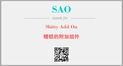 以上为Shitty Add On英文缩略词SAO的中文解释,以及该英文缩写在英语的流行度、分类和应用领域方面的信息。