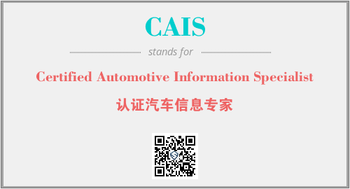 上述内容是“Certified Automotive Information Specialist”作为“CAIS”的缩写,解释为“认证汽车信息专家”时的信息,以及英文缩略词CAIS所代表的英文单词,其对应的中文拼音、详细解释以及在英文中的流行度和相关分类、应用领域及应用示例等。