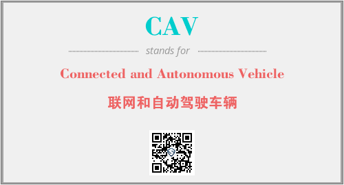 上述内容是“Connected and Autonomous Vehicle”作为“CAV”的缩写,解释为“联网和自动驾驶车辆”时的信息,以及英文缩略词CAV所代表的英文单词,其对应的中文拼音、详细解释以及在英文中的流行度和相关分类、应用领域及应用示例等。