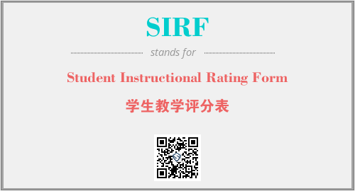 以上为Student Instructional Rating Form英文缩略词SIRF的中文解释,以及该英文缩写在英语的流行度、分类和应用领域方面的信息。