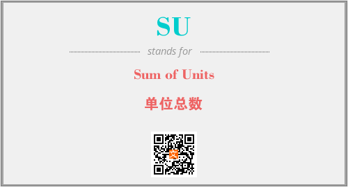 上述内容是“Sum of Units”作为“SU”的缩写,解释为“单位总数”时的信息,以及英文缩略词SU所代表的英文单词,其对应的中文拼音、详细解释以及在英文中的流行度和相关分类、应用领域及应用示例等。
