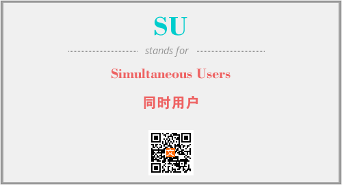 英文缩略词“SU”经常作为“Simultaneous Users”的英文缩写来使用,中文表示:“同时用户”。本文将详细介绍英文缩写词SU所代表英文单词,其对应的中文拼音、详细解释以及在英语中的流行度。此外,还有关于缩略词SU的分类、应用领域及相关应用示例等。