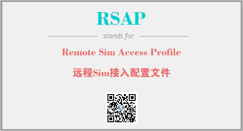 上述内容是“Remote Sim Access Profile”作为“RSAP”的缩写,解释为“远程Sim接入配置文件”时的信息,以及英文缩略词RSAP所代表的英文单词,其对应的中文拼音、详细解释以及在英文中的流行度和相关分类、应用领域及应用示例等。