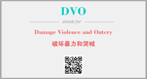 上述内容是“Damage Violence and Outcry”作为“DVO”的缩写,解释为“破坏暴力和哭喊”时的信息,以及英文缩略词DVO所代表的英文单词,其对应的中文拼音、详细解释以及在英文中的流行度和相关分类、应用领域及应用示例等。