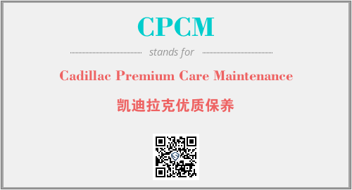 英文缩略词“CPCM”经常作为“Cadillac Premium Care Maintenance”的英文缩写来使用,中文表示:“凯迪拉克优质保养”。本文将详细介绍英文缩写词CPCM所代表英文单词,其对应的中文拼音、详细解释以及在英语中的流行度。此外,还有关于缩略词CPCM的分类、应用领域及相关应用示例等。