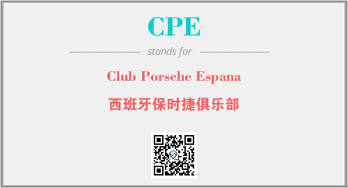上述内容是“Club Porsche Espana”作为“CPE”的缩写,解释为“西班牙保时捷俱乐部”时的信息,以及英文缩略词CPE所代表的英文单词,其对应的中文拼音、详细解释以及在英文中的流行度和相关分类、应用领域及应用示例等。