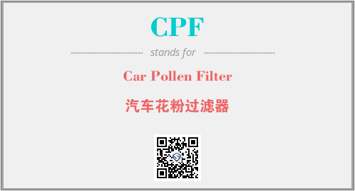 上述内容是“Car Pollen Filter”作为“CPF”的缩写,解释为“汽车花粉过滤器”时的信息,以及英文缩略词CPF所代表的英文单词,其对应的中文拼音、详细解释以及在英文中的流行度和相关分类、应用领域及应用示例等。