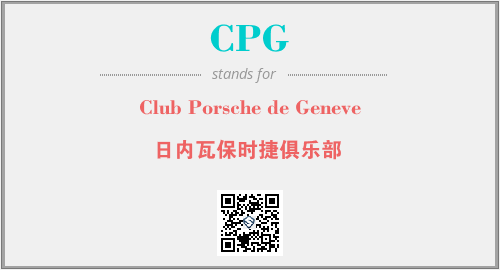 上述内容是“Club Porsche de Geneve”作为“CPG”的缩写,解释为“日内瓦保时捷俱乐部”时的信息,以及英文缩略词CPG所代表的英文单词,其对应的中文拼音、详细解释以及在英文中的流行度和相关分类、应用领域及应用示例等。
