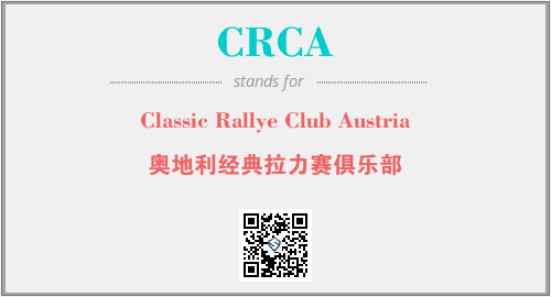 英文缩略词“CRCA”经常作为“Classic Rallye Club Austria”的英文缩写来使用,中文表示:“奥地利经典拉力赛俱乐部”。本文将详细介绍英文缩写词CRCA所代表英文单词,其对应的中文拼音、详细解释以及在英语中的流行度。此外,还有关于缩略词CRCA的分类、应用领域及相关应用示例等。