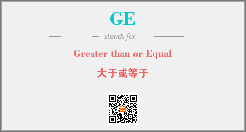 英文缩略词“GE”经常作为“Greater than or Equal”的英文缩写来使用,中文表示:“大于或等于”。本文将详细介绍英文缩写词GE所代表英文单词,其对应的中文拼音、详细解释以及在英语中的流行度。此外,还有关于缩略词GE的分类、应用领域及相关应用示例等。