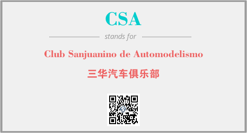 英文缩略词“CSA”经常作为“Club Sanjuanino de Automodelismo”的英文缩写来使用,中文表示:“三华汽车俱乐部”。本文将详细介绍英文缩写词CSA所代表英文单词,其对应的中文拼音、详细解释以及在英语中的流行度。此外,还有关于缩略词CSA的分类、应用领域及相关应用示例等。