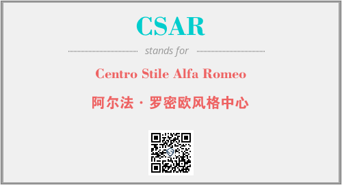 上述内容是“Centro Stile Alfa Romeo”作为“CSAR”的缩写,解释为“阿尔法·罗密欧风格中心”时的信息,以及英文缩略词CSAR所代表的英文单词,其对应的中文拼音、详细解释以及在英文中的流行度和相关分类、应用领域及应用示例等。