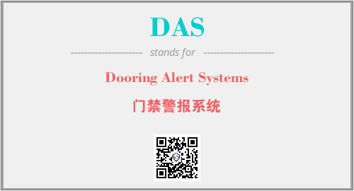 英文缩略词“DAS”经常作为“Dooring Alert Systems”的英文缩写来使用,中文表示:“门禁警报系统”。本文将详细介绍英文缩写词DAS所代表英文单词,其对应的中文拼音、详细解释以及在英语中的流行度。此外,还有关于缩略词DAS的分类、应用领域及相关应用示例等。