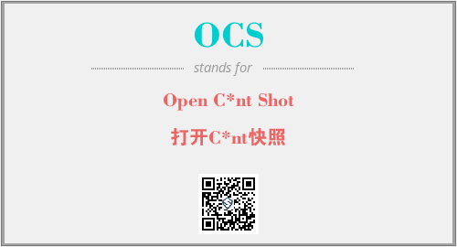 上述内容是“Open C*nt Shot”作为“OCS”的缩写,解释为“打开C*nt快照”时的信息,以及英文缩略词OCS所代表的英文单词,其对应的中文拼音、详细解释以及在英文中的流行度和相关分类、应用领域及应用示例等。