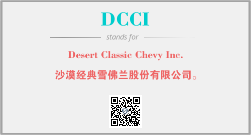 上述内容是“Desert Classic Chevy Inc.”作为“DCCI”的缩写,解释为“沙漠经典雪佛兰股份有限公司。”时的信息,以及英文缩略词DCCI所代表的英文单词,其对应的中文拼音、详细解释以及在英文中的流行度和相关分类、应用领域及应用示例等。