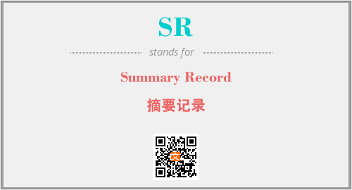 英文缩略词“SR”经常作为“Summary Record”的英文缩写来使用,中文表示:“摘要记录”。本文将详细介绍英文缩写词SR所代表英文单词,其对应的中文拼音、详细解释以及在英语中的流行度。此外,还有关于缩略词SR的分类、应用领域及相关应用示例等。