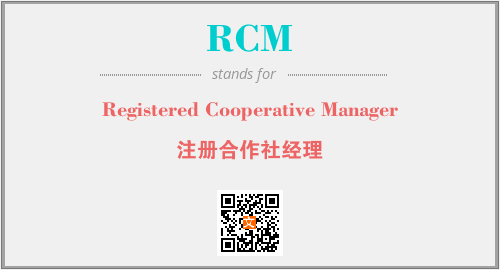 英文缩略词“RCM”经常作为“Registered Cooperative Manager”的英文缩写来使用,中文表示:“注册合作社经理”。本文将详细介绍英文缩写词RCM所代表英文单词,其对应的中文拼音、详细解释以及在英语中的流行度。此外,还有关于缩略词RCM的分类、应用领域及相关应用示例等。