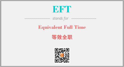 上述内容是“Equivalent Full Time”作为“EFT”的缩写,解释为“等效全职”时的信息,以及英文缩略词EFT所代表的英文单词,其对应的中文拼音、详细解释以及在英文中的流行度和相关分类、应用领域及应用示例等。