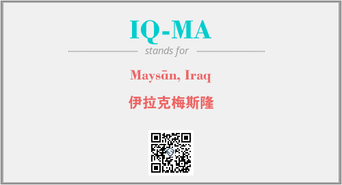 英文缩略词“IQ-MA”经常作为“Maysān, Iraq”的英文缩写来使用,中文表示:“伊拉克梅斯隆”。本文将详细介绍英文缩写词IQ-MA所代表英文单词,其对应的中文拼音、详细解释以及在英语中的流行度。此外,还有关于缩略词IQ-MA的分类、应用领域及相关应用示例等。
