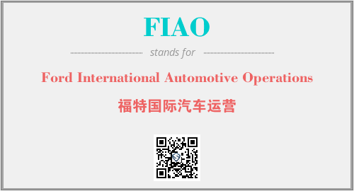以上为Ford International Automotive Operations英文缩略词FIAO的中文解释,以及该英文缩写在英语的流行度、分类和应用领域方面的信息。