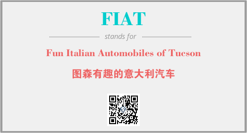 上述内容是“Fun Italian Automobiles of Tucson”作为“FIAT”的缩写,解释为“图森有趣的意大利汽车”时的信息,以及英文缩略词FIAT所代表的英文单词,其对应的中文拼音、详细解释以及在英文中的流行度和相关分类、应用领域及应用示例等。