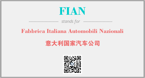 上述内容是“Fabbrica Italiana Automobili Nazionali”作为“FIAN”的缩写,解释为“意大利国家汽车公司”时的信息,以及英文缩略词FIAN所代表的英文单词,其对应的中文拼音、详细解释以及在英文中的流行度和相关分类、应用领域及应用示例等。