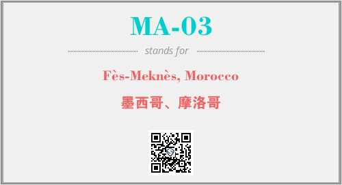 上述内容是“Fès-Meknès, Morocco”作为“MA-03”的缩写,解释为“墨西哥、摩洛哥”时的信息,以及英文缩略词MA-03所代表的英文单词,其对应的中文拼音、详细解释以及在英文中的流行度和相关分类、应用领域及应用示例等。