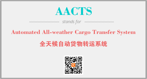 上述内容是“Automated All-weather Cargo Transfer System”作为“AACTS”的缩写,解释为“全天候自动货物转运系统”时的信息,以及英文缩略词AACTS所代表的英文单词,其对应的中文拼音、详细解释以及在英文中的流行度和相关分类、应用领域及应用示例等。