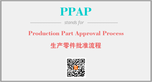 英文缩略词“PPAP”经常作为“Production Part Approval Process”的英文缩写来使用,中文表示:“生产零件批准流程”。本文将详细介绍英文缩写词PPAP所代表英文单词,其对应的中文拼音、详细解释以及在英语中的流行度。此外,还有关于缩略词PPAP的分类、应用领域及相关应用示例等。