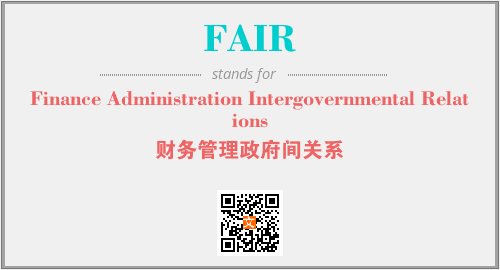 英文缩略词“FAIR”经常作为“Finance Administration Intergovernmental Relations”的英文缩写来使用,中文表示:“财务管理政府间关系”。本文将详细介绍英文缩写词FAIR所代表英文单词,其对应的中文拼音、详细解释以及在英语中的流行度。此外,还有关于缩略词FAIR的分类、应用领域及相关应用示例等。