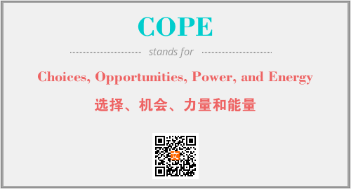 以上为Choices, Opportunities, Power, and Energy英文缩略词COPE的中文解释,以及该英文缩写在英语的流行度、分类和应用领域方面的信息。