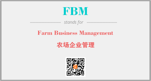 英文缩略词“FBM”经常作为“Farm Business Management”的英文缩写来使用,中文表示:“农场企业管理”。本文将详细介绍英文缩写词FBM所代表英文单词,其对应的中文拼音、详细解释以及在英语中的流行度。此外,还有关于缩略词FBM的分类、应用领域及相关应用示例等。