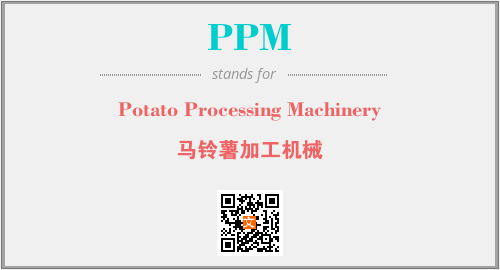 英文缩略词“PPM”经常作为“Potato Processing Machinery”的英文缩写来使用,中文表示:“马铃薯加工机械”。本文将详细介绍英文缩写词PPM所代表英文单词,其对应的中文拼音、详细解释以及在英语中的流行度。此外,还有关于缩略词PPM的分类、应用领域及相关应用示例等。