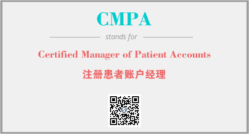 上述内容是“Certified Manager of Patient Accounts”作为“CMPA”的缩写,解释为“注册患者账户经理”时的信息,以及英文缩略词CMPA所代表的英文单词,其对应的中文拼音、详细解释以及在英文中的流行度和相关分类、应用领域及应用示例等。