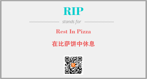 以上为Rest In Pizza英文缩略词RIP的中文解释,以及该英文缩写在英语的流行度、分类和应用领域方面的信息。