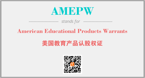 上述内容是“American Educational Products Warrants”作为“AMEPW”的缩写,解释为“美国教育产品认股权证”时的信息,以及英文缩略词AMEPW所代表的英文单词,其对应的中文拼音、详细解释以及在英文中的流行度和相关分类、应用领域及应用示例等。