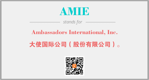 上述内容是“Ambassadors International, Inc.”作为“AMIE”的缩写,解释为“大使国际公司(股份有限公司)。”时的信息,以及英文缩略词AMIE所代表的英文单词,其对应的中文拼音、详细解释以及在英文中的流行度和相关分类、应用领域及应用示例等。