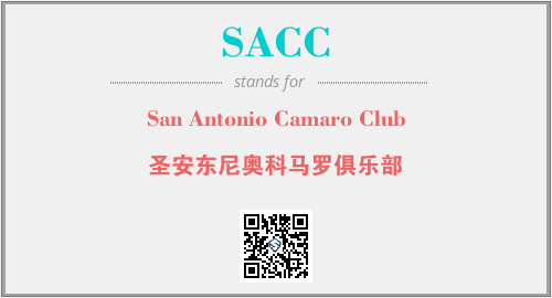 上述内容是“San Antonio Camaro Club”作为“SACC”的缩写,解释为“圣安东尼奥科马罗俱乐部”时的信息,以及英文缩略词SACC所代表的英文单词,其对应的中文拼音、详细解释以及在英文中的流行度和相关分类、应用领域及应用示例等。