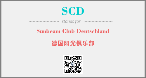 英文缩略词“SCD”经常作为“Sunbeam Club Deutschland”的英文缩写来使用,中文表示:“德国阳光俱乐部”。本文将详细介绍英文缩写词SCD所代表英文单词,其对应的中文拼音、详细解释以及在英语中的流行度。此外,还有关于缩略词SCD的分类、应用领域及相关应用示例等。