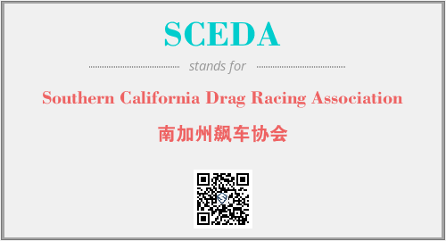 上述内容是“Southern California Drag Racing Association”作为“SCEDA”的缩写,解释为“南加州飙车协会”时的信息,以及英文缩略词SCEDA所代表的英文单词,其对应的中文拼音、详细解释以及在英文中的流行度和相关分类、应用领域及应用示例等。
