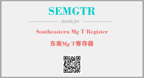 上述内容是“Southeastern Mg T Register”作为“SEMGTR”的缩写,解释为“东南Mg T寄存器”时的信息,以及英文缩略词SEMGTR所代表的英文单词,其对应的中文拼音、详细解释以及在英文中的流行度和相关分类、应用领域及应用示例等。