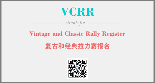 上述内容是“Vintage and Classic Rally Register”作为“VCRR”的缩写,解释为“复古和经典拉力赛报名”时的信息,以及英文缩略词VCRR所代表的英文单词,其对应的中文拼音、详细解释以及在英文中的流行度和相关分类、应用领域及应用示例等。